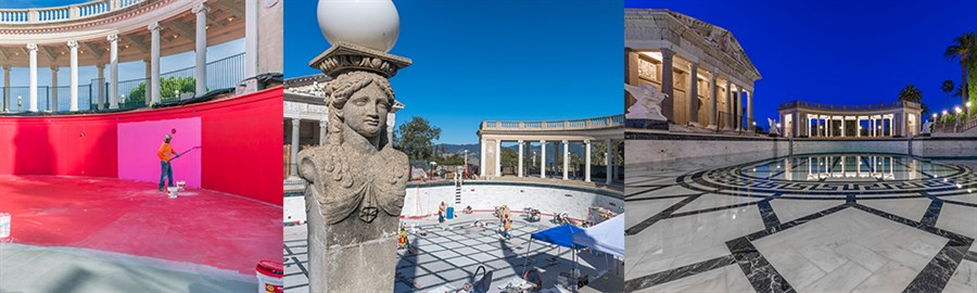The Neptune Pool at Hearst Castle is perhaps the most exciting and beautiful renovation project a tile and stone contractor could ever dream of. Located on a bluff overlooking the Pacific Ocean above San Simeon, California, this iconic marble pool was inspired by the stunning location and equals the extravagant architecture of the castle itself. When cracks and leaks in the 90-year old landmark required repairs and a complete replacement of the tile, a full system from Custom Building Products was selected to install the new stone work.