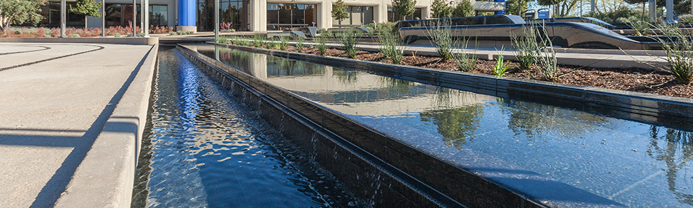 Silicon Valley is the land of software giants, home to companies whose applications have become household names. When one of these companies decided to beauty their corporate campus with a granite water feature large enough to front multiple buildings, the tile contractor called on CUSTOM. De Anza Tile had to break the specifications to ensure the products they trusted were installed on such a landmark project.