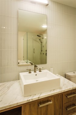Bathrooms receiving a 12″ x 12″ porcelain tile on the floor were also set with ProLite mortar. Walls and tub surrounds were designed with a smaller ceramic tile and installed with VersaBond® Flex Fortified Thin-Set Mortar.