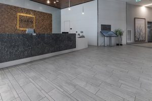 “Installing porcelain panels on the ceiling using a scissor lift was the toughest tile challenge we faced,” offered Vescio. “Using the correct mortar provided the adhesion strength which kept the panels from sagging or shifting during the curing process.”