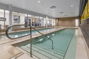 Surface preparation continued with waterproofing in areas exposed to water including showers and pools. These and other wet areas were treated with two coats of RedGard Waterproofing and Crack Prevention Membrane which exceeds both ANSI A118.10 and A118.12 standards. Liquid-applied RedGard is easy to apply for a rapid drying, durable and monolithic barrier in shower receptors and submerged tile assemblies. The concrete slab in the Sports Nutrition wing had high moisture vapor emission readings so it was covered with RedGard Uncoupling Mat prior to tiling. This mat is ideal for crack isolation over challenging substrates and provides vapor management for young concrete.