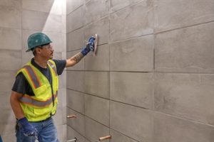 All GPTP were installed using MegaLite Ultimate Crack Prevention Large Format Tile Mortar. Materials testing on the mesh backing of the panels showed that MegaLite provided the best bond and highest performance with the tile. MegaLite delivers the ultimate in bond strength and flexibility for the most demanding installations. Like ProLite, this mortar exceeds ANSI A118.15TE and both weigh 40% less than typical mortars.