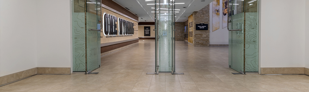 Tile installation throughout both buildings was carried out by Commercial Flooring, Inc. of Cheyenne, Wyoming. Todd Finch, project manager with CFI, explained that a single-source manufacturer with a fully integrated, premium quality system was important to university representatives. The tile specified on these institutional projects was almost entirely large format file and also included hundreds of challenging full-size gauged porcelain tile panels.
