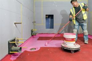 Core restrooms on all floors and the parking garage were treated with RedGard® Waterproofing and Crack Prevention Membrane. A ready-to-use elastomeric membrane that creates a continuous waterproof barrier, RedGard has outstanding adhesion and bonds directly to a variety of drain assemblies. RedGard exceeds both ANSI A118.10 and A118.12 for dual protection against moisture intrusion and in-plane crack transmission. Third-party laboratory testing has shown that RedGard outperforms other liquid-applied membranes for key performance attributes as well as actual coverage rate.