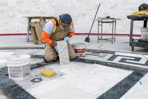 The natural stone tile work on this project was awarded to the third-generation marble craftsmen at Carnevale & Lohr, Inc., of Bell Gardens, CA. Their union stone masons and tile setters are trained in time-tested and traditional hand fitting methods, but also incorporate modern tile installation technology, standards and techniques. This way, the installers brought together the best of the old and new worlds of tile craftsmanship.