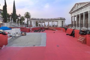 Originally designed by publishing magnate William Randolph Hearst’s architect Julia Morgan in the 1920’s, the Roman-themed Neptune Pool was expanded three times until it reached its current size in 1936. It now holds 345,000 gallons of water, measures 104-feet long by 58-feet to 95-feet across and reaches a depth of 10-feet. The pool is an engineering marvel, being suspended rather than sunken; this factor added an extra layer of complexity to shell and plumbing repair efforts at the site.