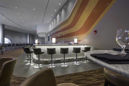 Four CUSTOM grouts in 12 different colors were used to complement 40 types of tile materials and formats. Most of the dry and intermittently wet areas received PolyBlend® Sanded Grout. Non-sanded PolyBlend was chosen to grout the extensive mosaic installations to prevent any scratching of the glass. Prism® Ultimate Performance Grout was applied in some of the high-traffic wet areas like the community ice rink showers and public bathrooms. CEG-IG 100% Solids Industrial Grade Epoxy Grout was used in spaces such as the steam room for its resistance to high temperatures. Movement joints within the tile assemblies will remain permanently flexible after treatment with color-matching CUSTOM Commercial 100% Silicone Sealant.